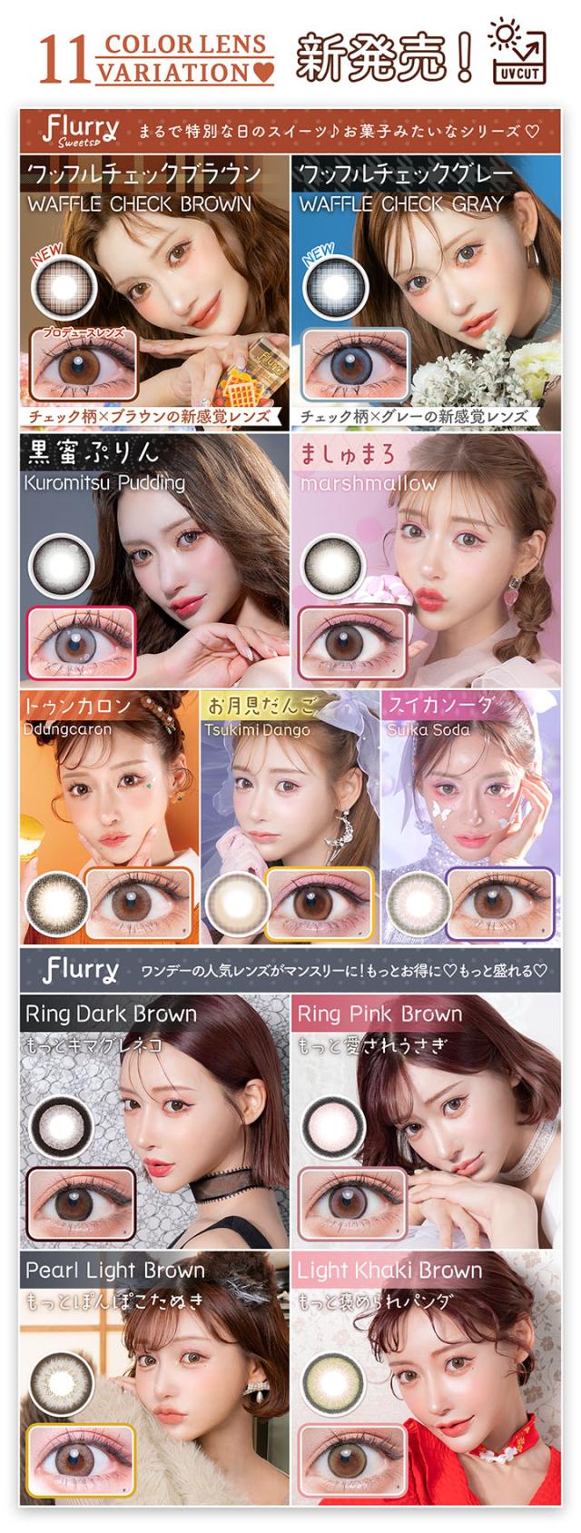 ■カラー:リングピンクブラウン、ライトカーキブラウン、リングダークブラウン、ましゅまろ、お月見だんご、スイカソーダ、トゥンカロン、パールライトブラウン、黒蜜ぷりん、ワッフルチェックブラウン、ワッフルチェックグレー