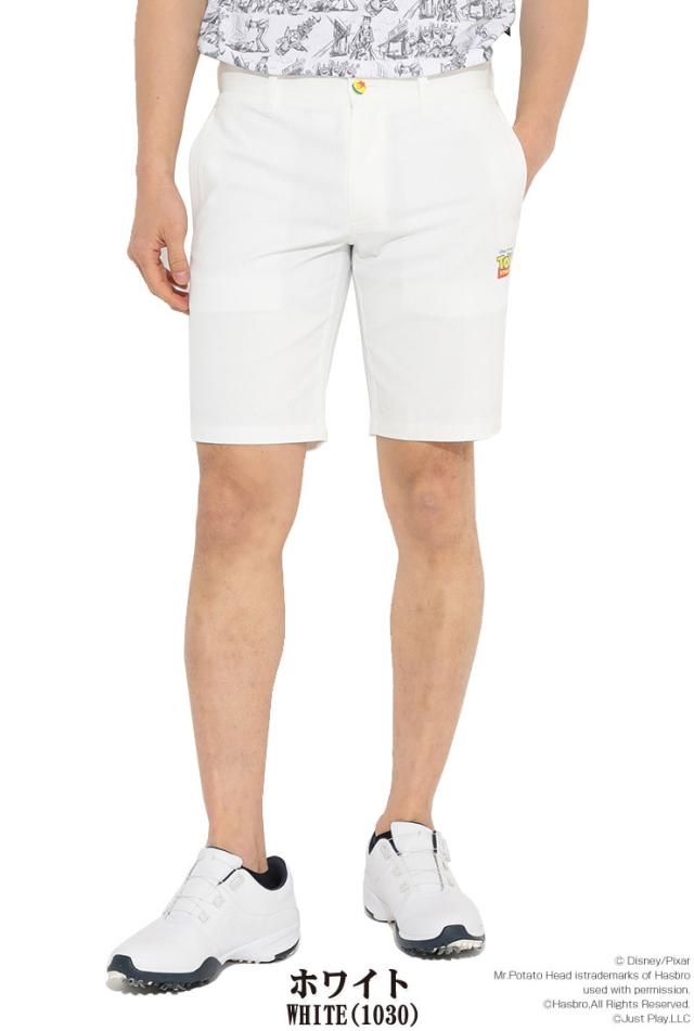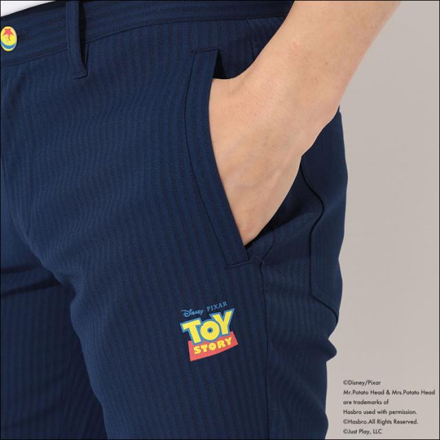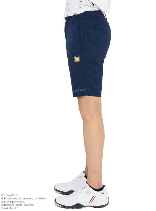 世界中で大人気の「トイ・ストーリー」のキャラクターのシルエットを裾にプリントしたショートパンツです。ストライプのドビー素材を使用。ウエストボタンには「ピクサーボール」を表現したボタン付き。バックポケットにはキャロウェイロゴが入っています。