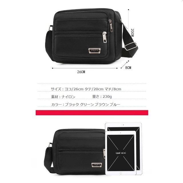 ショルダーバッグ メンズ 4色 斜め掛け ナイロン 普段使い バッグ メール便 送料無料
