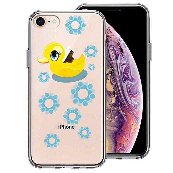 iPhone8 ケース ハードケース ハイブリッド クリア アヒルちゃん あひる ブルー カバー アイフォン スマホケース