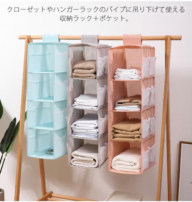 - 省スペースで収納できとても満足しています。ハンガーラックの端に掛け自分の下着やストッキング、靴下等分けてます。両サイドのポケットはストックを入れて、一目で分かり便利。 大好きなピンクをお安く買えて良か...