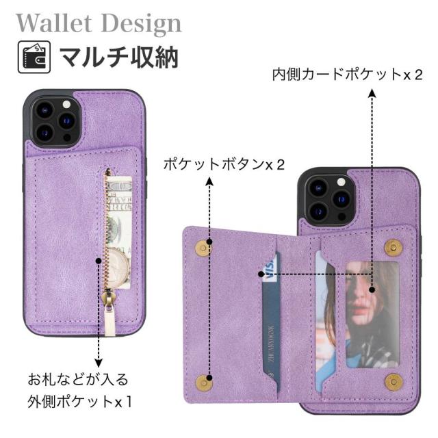 iPhone 全シリーズ iPhone15 カード収納 使いやすい レディース アイフォン13ケース ポケット付き カメラ保護 iPhone11 ケース ジッパー 小錢収納 アイホン12ケース ピンク パープル iPhone 14 札入れ 小銭入れ iPhone 13 背面ケース レザー ファスナー付き多機種 耐衝撃