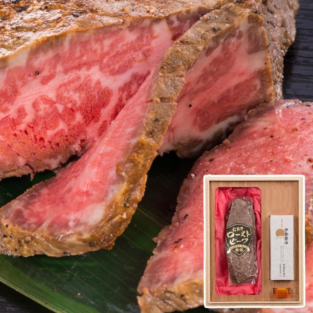 松阪牛ローストビーフ(300g)×1、伊勢醤油(100ml)×1、別添ねりからし×1