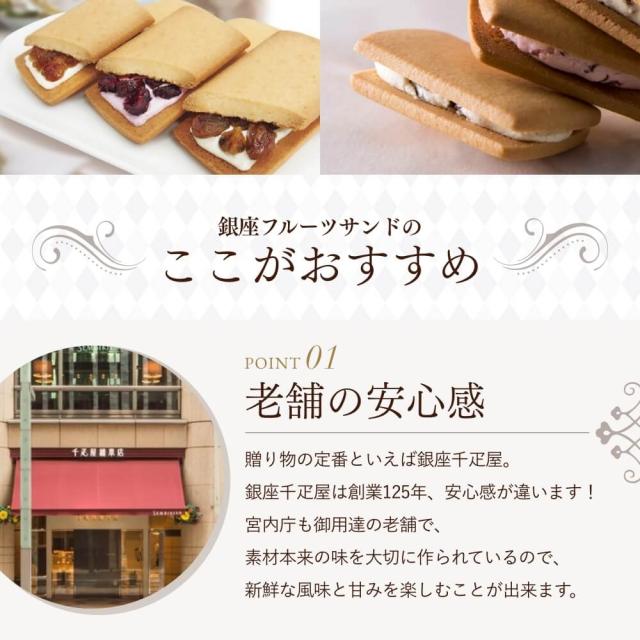 なめらかで口当たりのやさしいフルーツクリームと香り豊かな果肉を、香ばしいクッキーでサンドした銀座千疋屋オリジナルのフルーツサンドです。