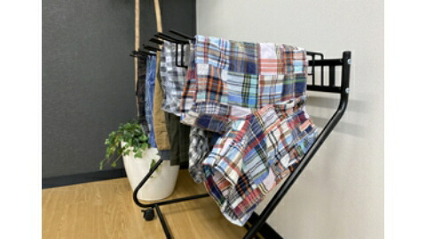 いろいろな掛け方ができるのでちょっとした物干しスタンドにも。