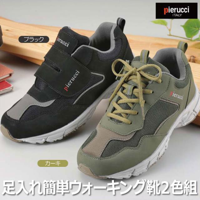 紳士靴 メンズ ウォーキングシューズ 足入れ簡単ウォーキング靴 2色組 4E(5031) Pierucci/ピエルッチ ブラック カーキ