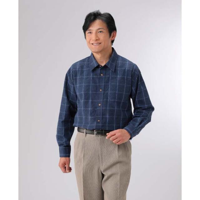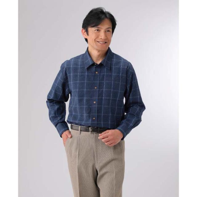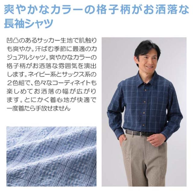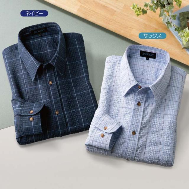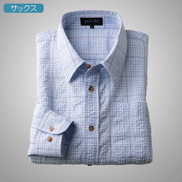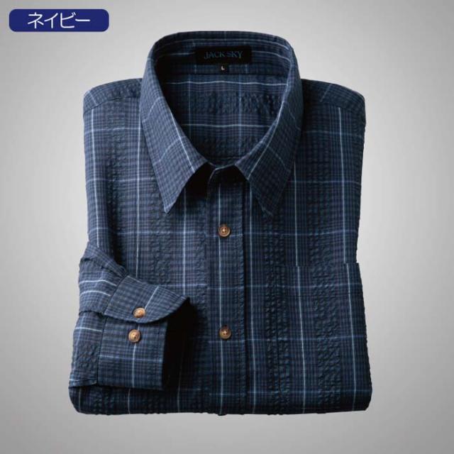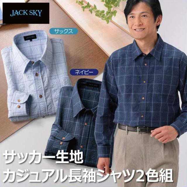 紳士服 メンズ サッカー生地カジュアル長袖シャツ 2色組(AS-0420) M/L/LL JACK SKY/ジャック スカイ