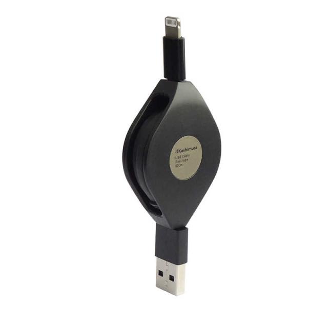 カシムラ 巻き取り式 高耐久ケーブル Lightning ライトニング ケーブル 80cm ブラック KL-125