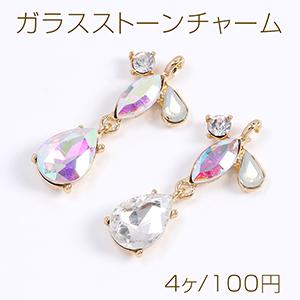 ガラスストーンチャーム 幾何学型 カン付き 18×38mm ゴールド(4ヶ)