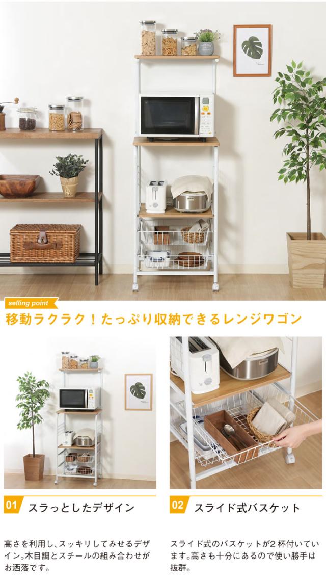 【値下げ】レンジワゴン 幅51.5 キャスター付き レンジ台 ハイタイプ 幅51.5 奥行41 高さ140.5cm レンジラック キッチンラック ワゴ