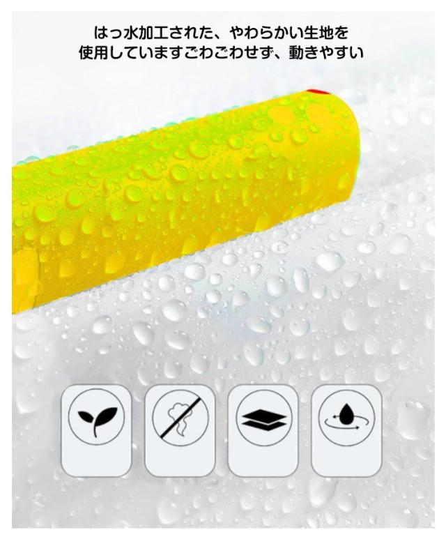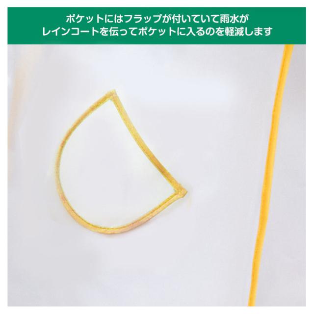 | 機能的なデザイのキッズ用レインコート はっ水加工された、やわらかい生地を使用していますごわごわせず、動きやすい フードには透明ひさし付で、視界良好 ポケットにはフラップが付いていて雨水がレインコートを伝ってポケットに入るのを軽減します リュックを背負ったままでも着用できる安心設計 動きやすい袖口は、少々サイズが大きめのコートを着た時にもお子様の身体にフィットしやすいです | |