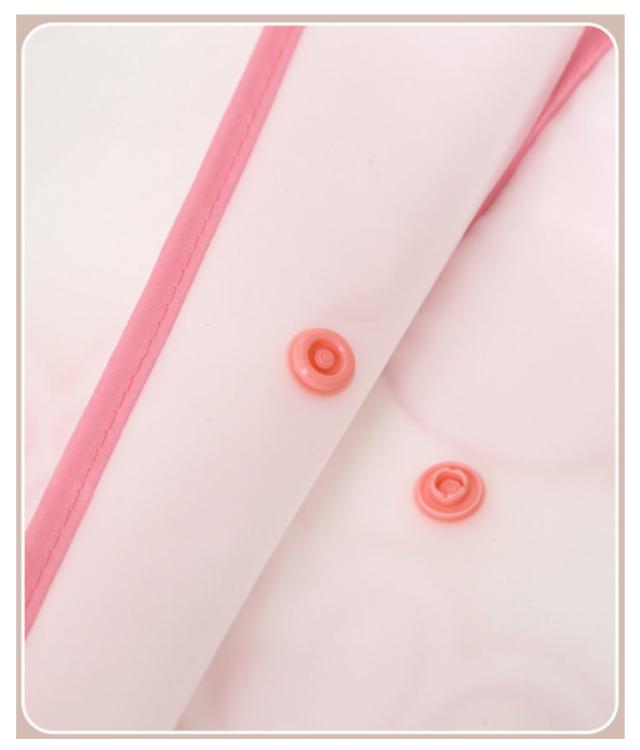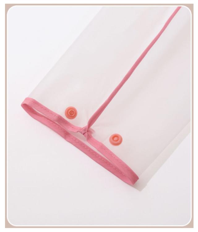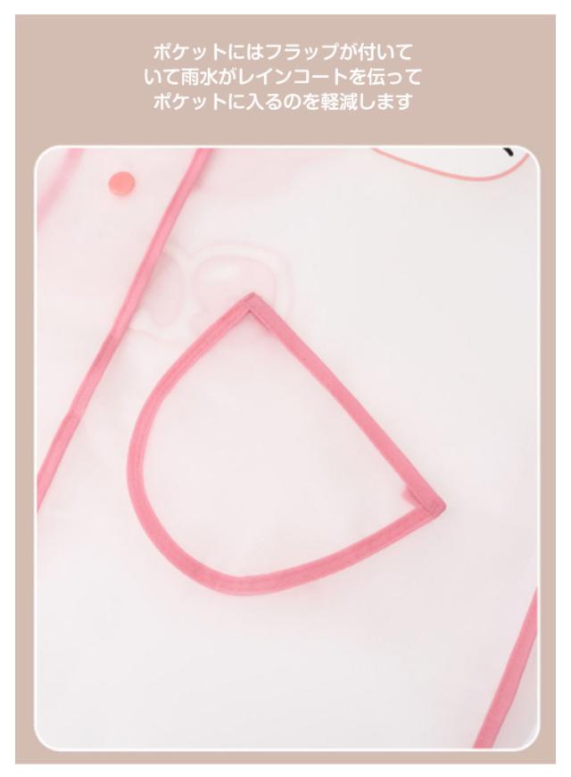 | リュック・ランドセル対応のおしゃれなレインコート はっ水加工された、やわらかい生地を使用していますごわごわせず、動きやすい 背中のボタンを外すとランドセルやリュックを背負ったままでも着用できる安心設計 フードは透明窓付きなので、お子様の視線を遮らず、前方が見やすい ポケットにはフラップが付いていて雨水がレインコートを伝ってポケットに入るのを軽減します 手さげの収納袋付きなので、コンパクトにまとめられます | |