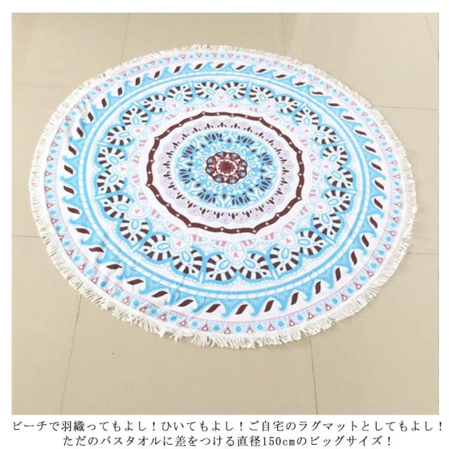 ラウンドビーチタオル ビーチマット ビーチタオル ビーチラグ 速乾 丸形 薄手 円形 タッセル入り 全12色 おしゃれ 海 プール 旅行 レジャーシート