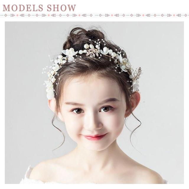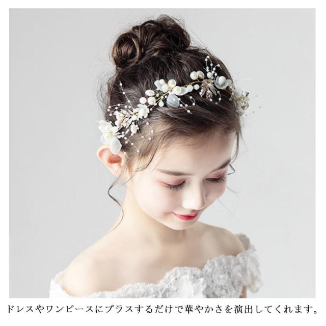 ヘアアクセ ヘッドドレス 子供 髪飾り 女の子 キッズ ヘアアクセサリー フォーマル 結婚式 入学式 入園式 卒園式 ピアノ発表会 華やか ティアラ リボン 紐 子供ドレス ホワイト パール カチューシャ フラワーガール 写真撮影 プレゼント 送料無料