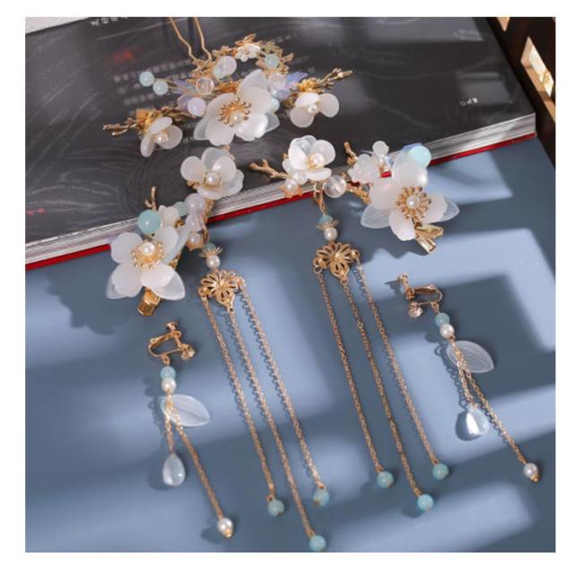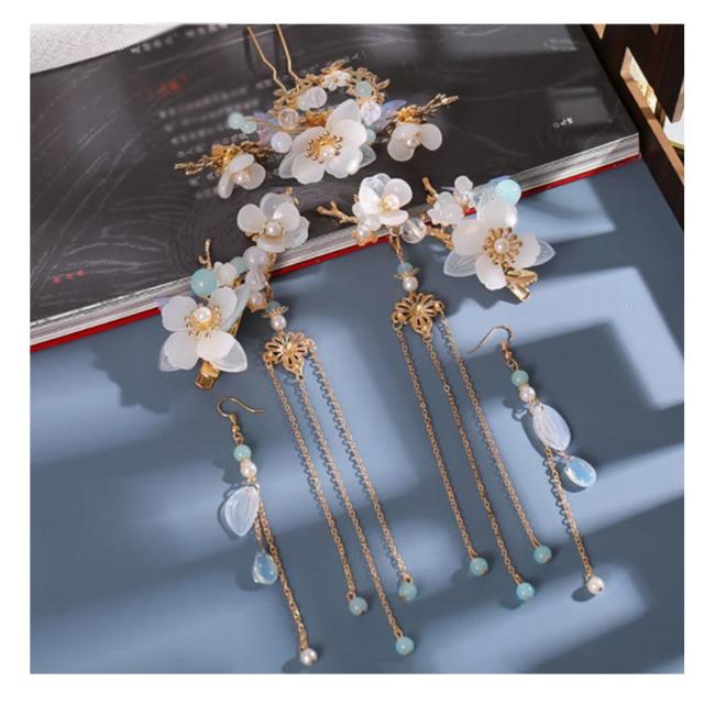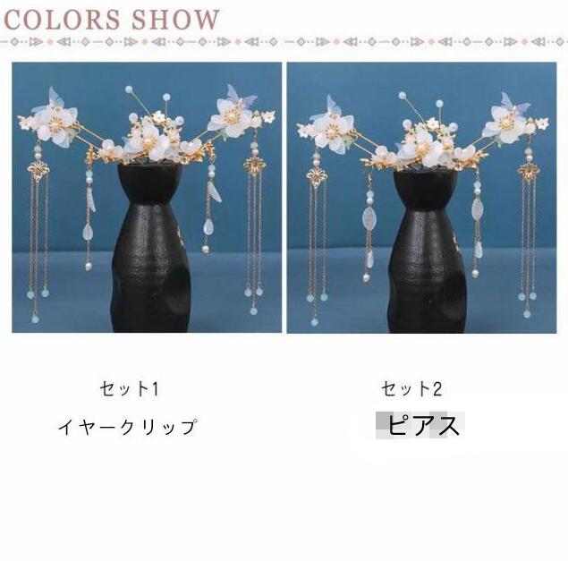 髪飾り 5点セット 中国風 漢服 チャイナ風 中華風 ヘアアクセサリー かんざし ピアス/イヤリング 古代 衣装 フリンジかんざし カチューシャ 演出道具 コスプレ 唐装用 撮影 髪飾り 可愛い 送料無料