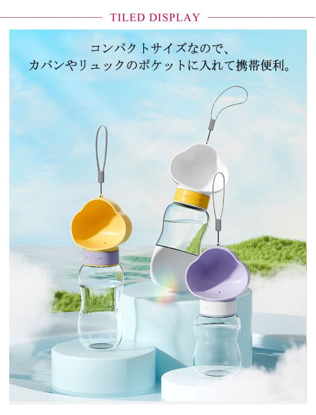 | お水とおやつ・ごはんを入れることができる、1台2役のペット用ウォーターボトル。 ぐるぐる回転するだけでON/OFF切換え、簡単に水分補給ができます。 飲み口に残ってしまった水を捨てられない時でもボトルを上に向けるだけで、水を元に戻せるのも便利。 ボトル下部には、フードやおやつ用のケースがついているので、お散歩中にワンちゃんがお腹がすいた時も安心。 コンパクトサイズなので、カバンやリュックのポケットに入れて携帯便利。 動物にも環境にもやさしいPETとABS素材を使用。 各パーツは分離できるので、取り外し簡単でお手入れしやすいから衛生的。 | |