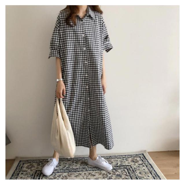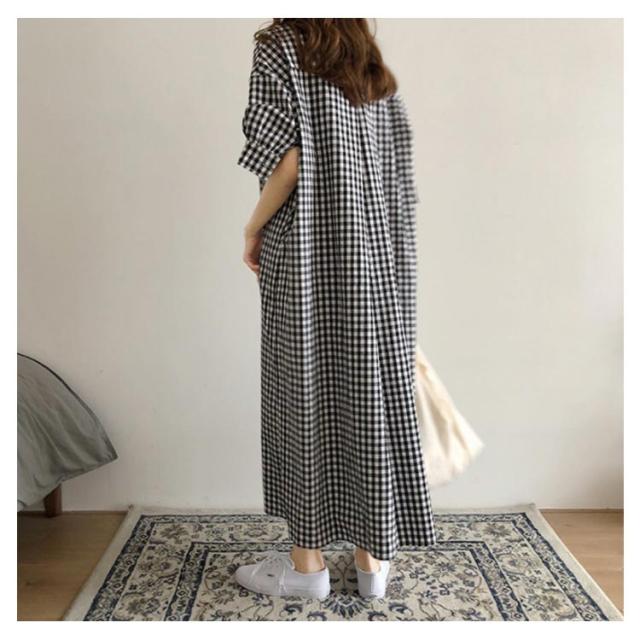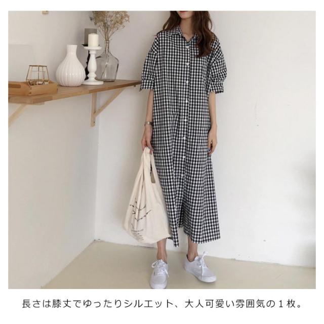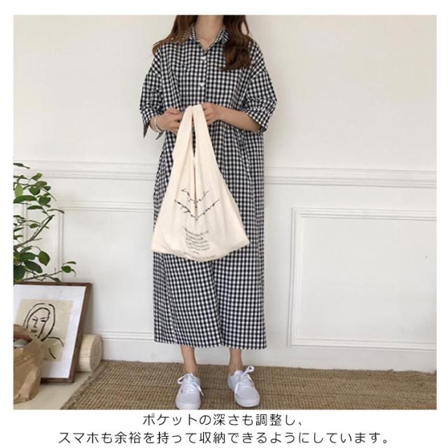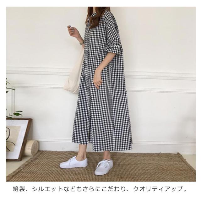 送料無料 ワンピース スキッパーシャツワンピース チェック柄 チェックワンピース ギンガムチェック S〜XL Wガーゼ 大人 ナチュラル 大きいサイズ オリジナル 綿 コットン 春 秋 レディース マタニティ ゆったり エコロコ