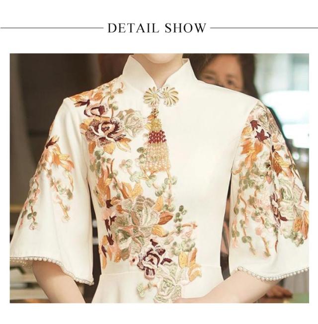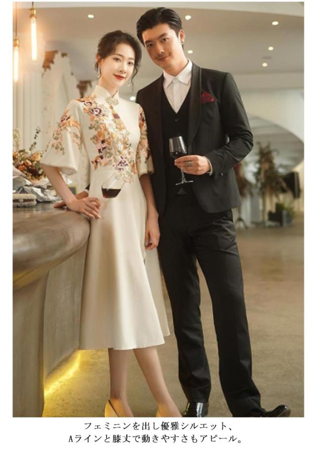 エレガントなチャイナ風!ドレス フォーマルドワンピース 結婚式 ワンピース パーティードレス 袖あり 膝丈 夏 春 ミセス 花柄 お呼ばれ 二次会 披露宴 上品 かわいい S M L XL 2XL 3XL