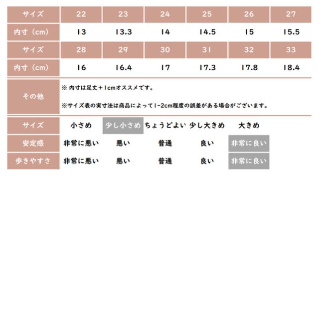 | サイズ | 22 23 24 25 26 27 28 29 30 31 32 33 |