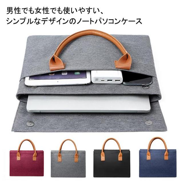 | 男性でも女性でも使いやすい、シンプルなデザインのノートパソコンケース ハンドル部分は耐久性を考慮して質の良いレザーを使用します。 防水、軽くて丈夫なポリエステル素材を採用しました、雨の日でもビジネスに集中! PCだけでなく、iPad miniやタブレット、PC周辺パーツ、ペン、スマホを収納できるように4つのポケットを設計しました。 余分なものはすべて排除し、すっきりな見た目と持ち運びやすさを追求しました。 シンプルなデザインは年齢・性別を問いあわずに誰でも簡単に使えます。 | |