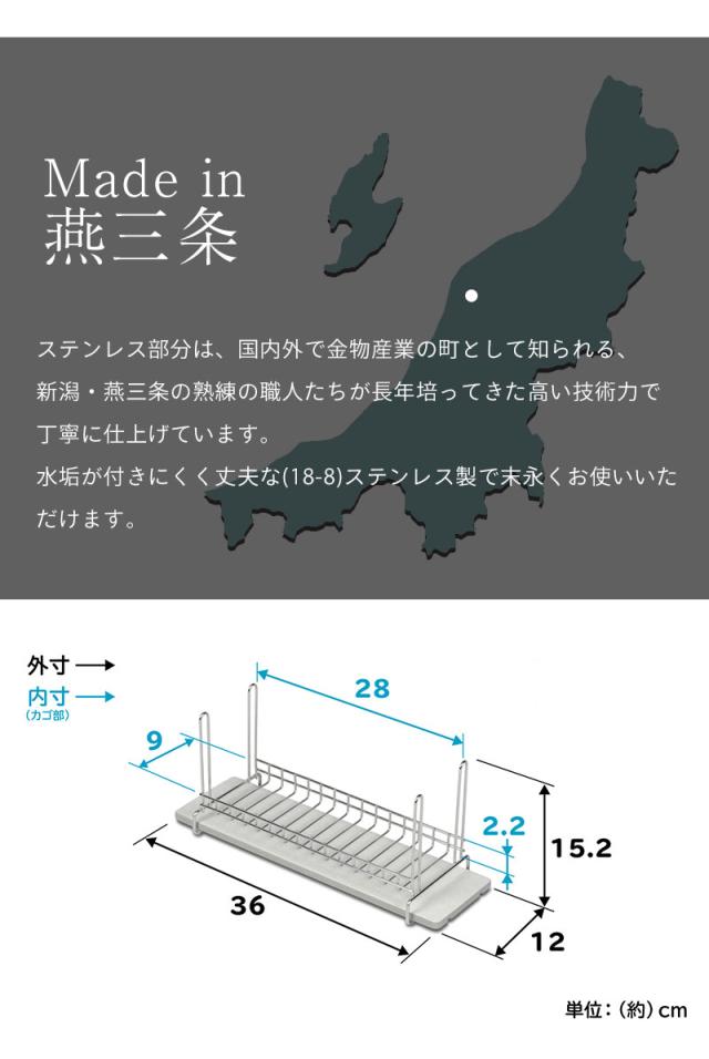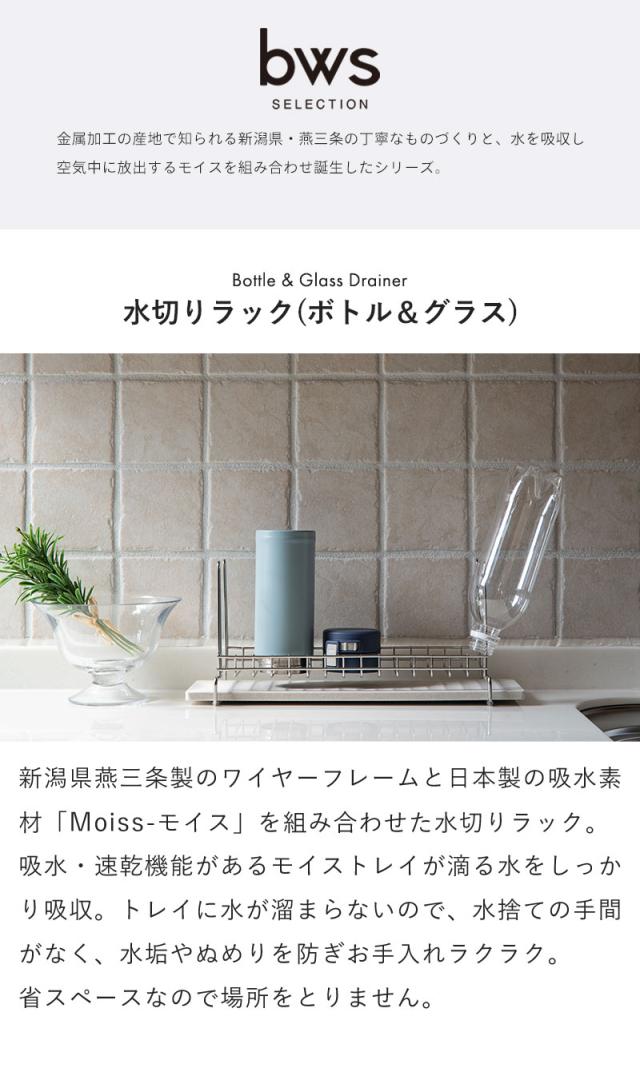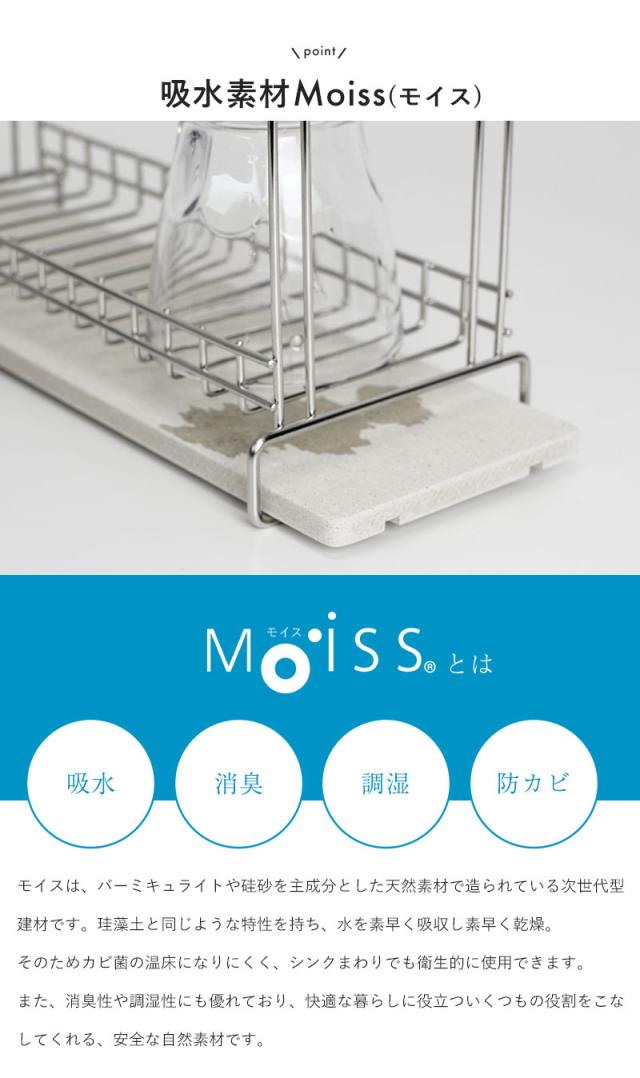 新潟県の燕三条製の水切りラックと日本製の吸水素材モイスを組み合わせました。
