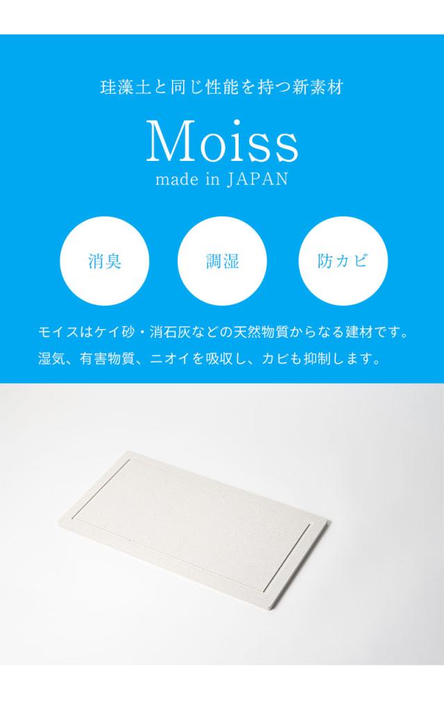吸水素材モイスは、天然素材を主成分とするインテリア建材です。