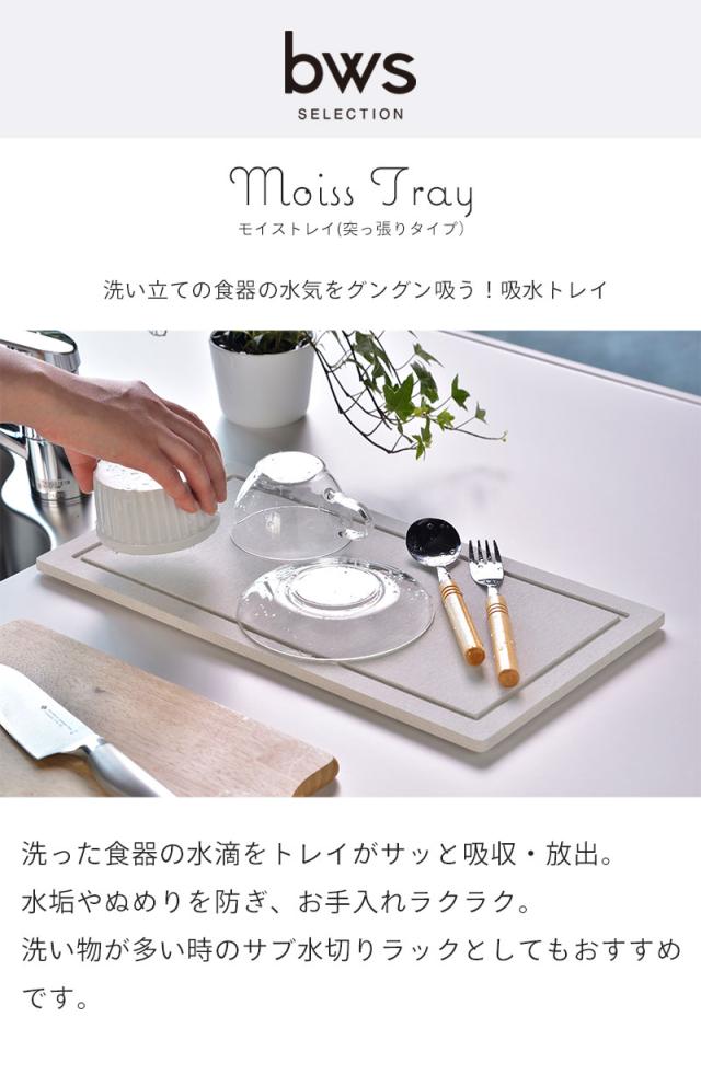 洗い物から落ちた水滴を吸収し、徐々に空気中に放出してくれる日本製の吸収トレイ。