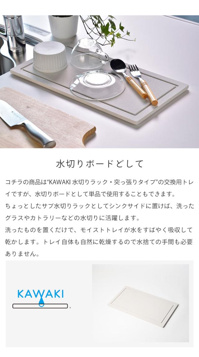 水切りトレー 水切りマット ドライングボード 40.5×21.5cm 珪藻土 カワキ 突っ張りタイプ交換用 水切りトレイ 吸水 速乾 国産 日本製
