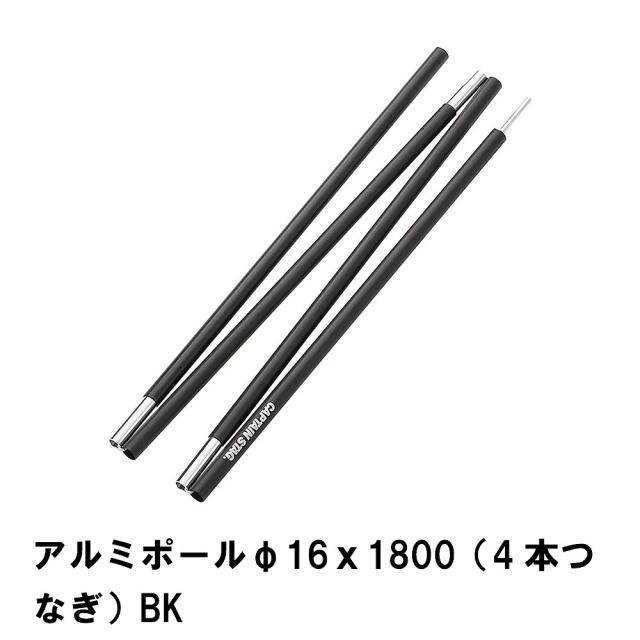 【値下げ】ジョイントポール テント 設営 連結 道具 キャンプ 直径16mm×長さ1800mm アルミポール 4本つなぎ ブラック アウトドア 軽量