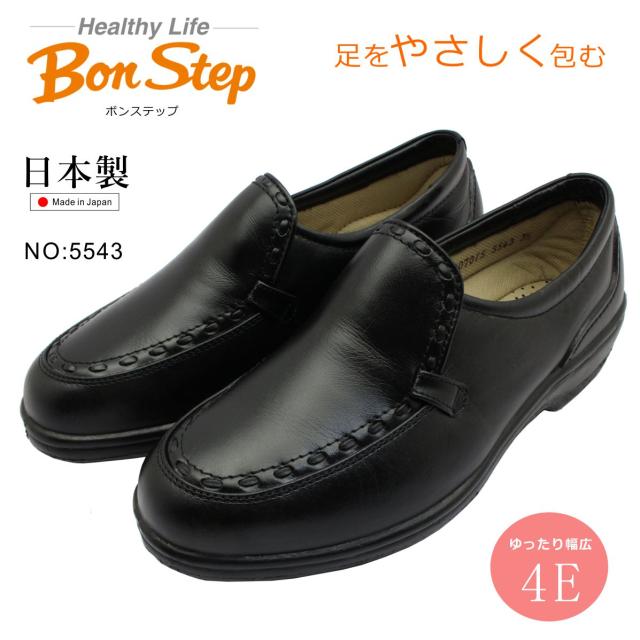 | ボンステップ Bon Step レディース 5543 コンフォートシューズ ウォーキング スリッポン 幅広4E 日本製 大塚製靴 ブラック 黒 【お取り寄せ商品】