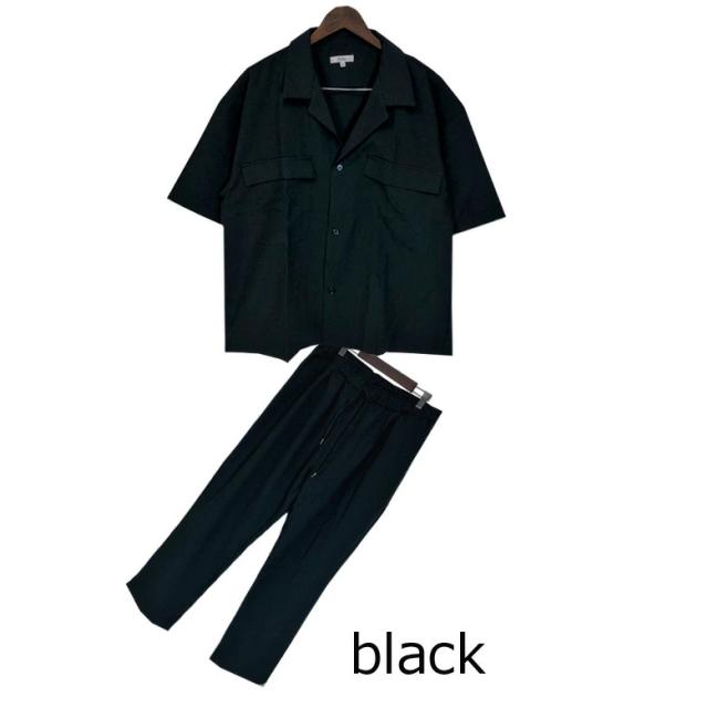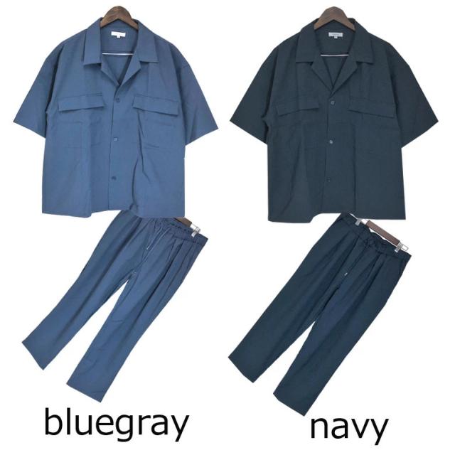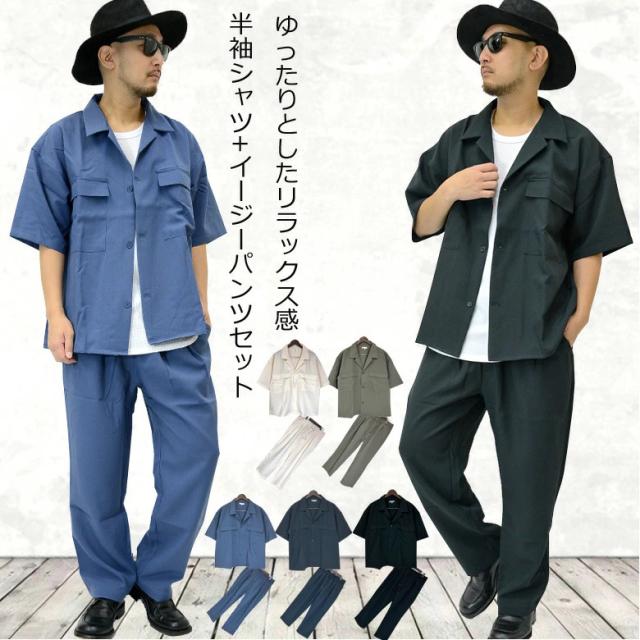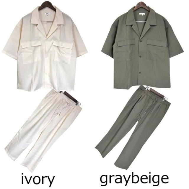 【閉店セール】メンズ セットアップ ワイドシルエット50823 ゆったり ルーズ オーバーサイズ ビッグシルエット CPOシャツ ワイドパンツ イージーパンツ ライトアウター 上下セットSETUP アイボリー グレーベージュ ブルーグレー ブラック ネイビー M L XL 上下 送料無料