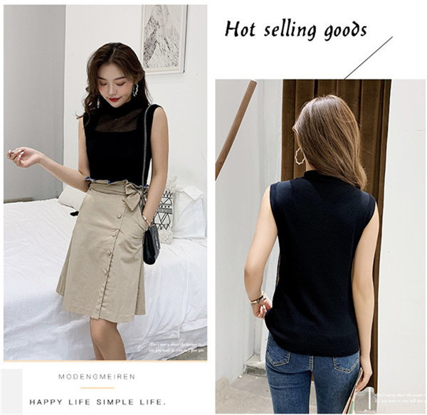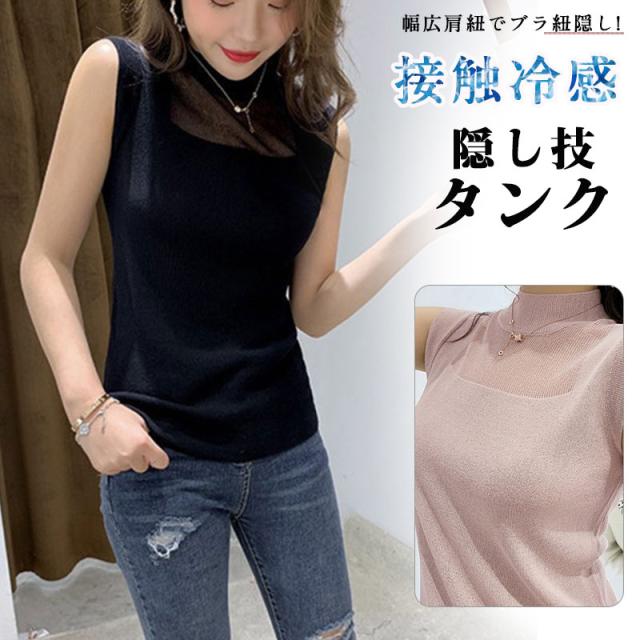 セール中 数量限定 爆売中 ノースリーブ トップス タンクトップ キャミソール ブラウス ハイネック デザイン入り レイヤード 無地 薄手 インナー おしゃれ