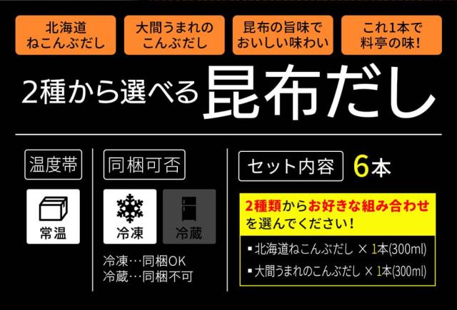 【お好きな種類選べる】北海道ねこんぶだし・大間生まれの昆布だし 6本セット 送料無料 hsk