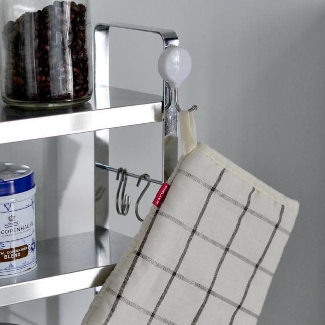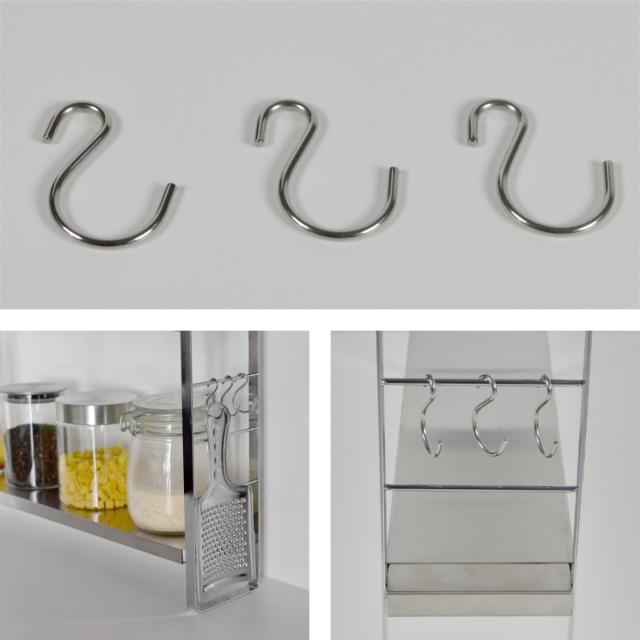 ステンレス製のフックが3個付属しています。フレームに引っ掛けて、キッチンツールの収納など便利にお使いいただけます。