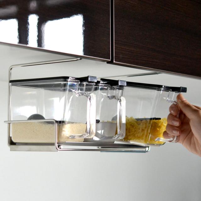 調味料ラック 吊り戸棚スパイスラック bws SELECTION ( 調味料ポット付き スプーン付き 日本製 ステンレス ビーワースセレクション 戸棚下収納 まな板ホルダー スパイスラック 吊り下げ収納 キッチンラック )