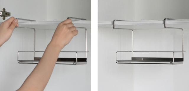 ●戸棚に差し込むだけで簡単に設置ができる、ステンレス製スパイスラックです。