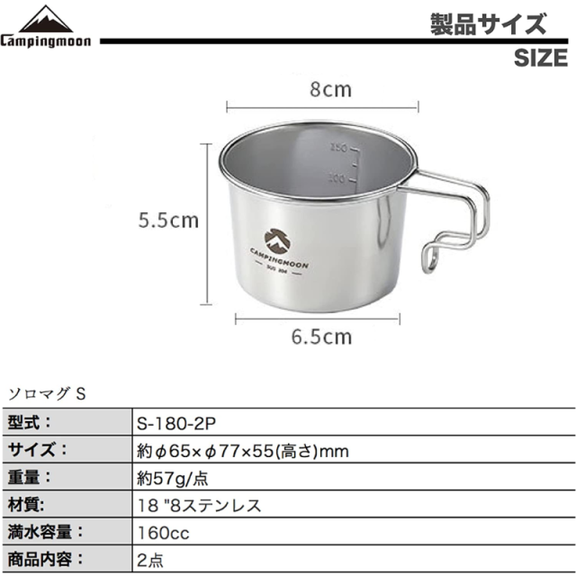 キャンピングムーン(CAMPING MOON) キャンプ コーヒー ソロマグ S マグカップ 160ml 2点セット SOLO MUG S-180-2P