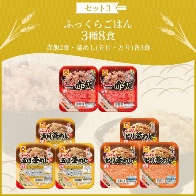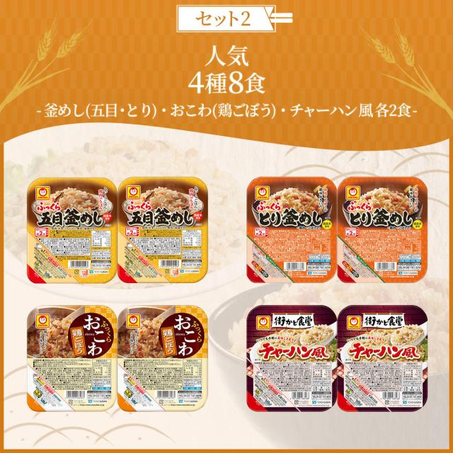 | 内容量 | ■ ごはんパック 8種8食セット 五目釜めし 160g とり釜めし 160g 赤飯 160g おこわ 中華風 160g おこわ 鶏ごぼう 160g ドライカレー 160g チキンライス 160g チャーハン風 160g ■ 人気ごはんパック 4種8食セット 五目釜めし 160g ×2 とり釜めし 160g ×2 おこわ 鶏ごぼう 160g ×2 チャーハン風 160g ×2 ■ ふっくらごはん 3種8食セット 五目釜めし 160g ×3 とり釜めし 160g ×3 赤飯 160g ×2 ■ ふっくらおこわ 2種8食セット おこわ 中華風 160g ×4 おこわ 鶏ごぼう 160g ×4 ■ 街かど食堂 3種8食セット ドライカレー 160g ×2 チキンライス 160g ×3 チャーハン風 160g ×3 5種類のセットからお選びいただけます。 |