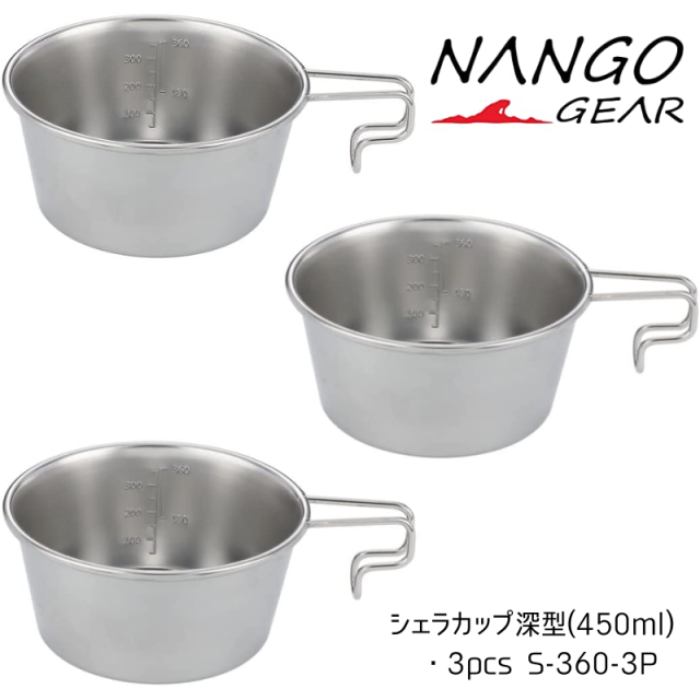 NANGOGEAR(南湖 キャンプ ギア) シェラカップ シエラ ステンシェラ 18-8ステンレス製 深型 450ml 2個 収納 帆布ケース付き S-360-2P+B 送料無料 ペア 調理 コーヒー (21119)