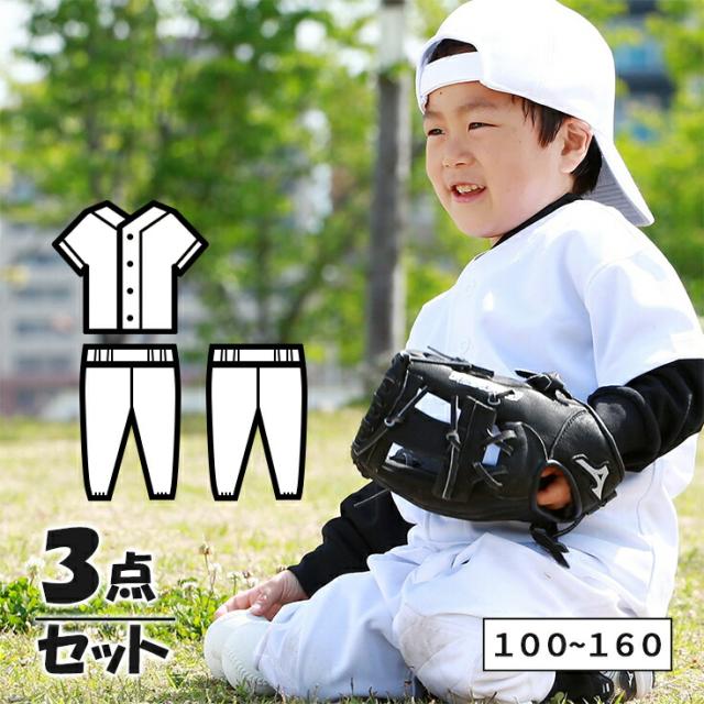 野球 ユニフォーム キッズ セット 上下 + パンツ ジュニア 少年 練習着 100cm〜160cm 子供 小学生 幼稚園 シャツ ズボン プレゼント 福袋