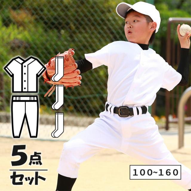 野球 ユニフォーム ジュニア セット 上下 + ソックス3足組 少年 練習着 100cm〜160cm キッズ 子供 小学生 幼稚園 シャツ パンツ ズボン 福袋