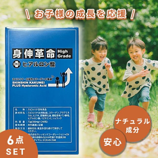 6点セット【ナチュラル成分】子供 身長 成長 伸ばす サプリ 身長サプリ 成長サプリ 子供サプリ スピルリナ マルチビタミン ミネラル ヒアルロン酸 コラーゲン ビタミンC アクアミネラル ヒジキ 菜種硬化油 亜鉛含有パン酵母 シェラック