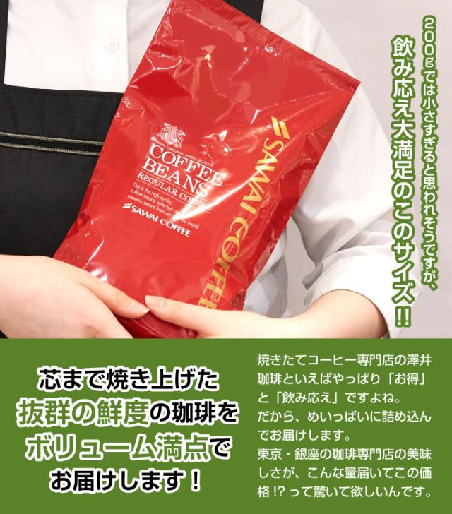 澤井珈琲(さわいこーひー)では、お客様のお家に商品が届き、箱を開けた瞬間。そして、トレードマークの赤いコーヒー袋の封を開けた時に鮮度抜群の「香り高さ」と、飲んだときの「味わい」に感動して頂けるように、レギュラーコーヒーはご注文を頂いてから焙煎をして焼きたてのコーヒー、コーヒー豆、珈琲、珈琲豆をお届けをしている焼き立て珈琲専門店です。お客様に「美味しい」と言って喜んで頂く事が私たちの喜びと思ってます。「美味しいコーヒーをお届けしたい」と想い続けて生まれたこだわりの味を、どうぞ、この機会にお楽しみくださいませ。澤井珈琲では、コーヒー豆は挽き方がご選択いただけます。珈琲豆を挽く事をお楽しみ頂ける『豆のまま』や、私共の専用の特注サイズの大型のミルで挽いて、コーヒー粉の状態にしてお届けする方法がございます。中挽き、細挽き、粗挽き、荒挽きなど様々な挽き方がございますが、私共がお薦めする『店長のおすすめ挽き』にて、そのコーヒーに合った一番美味しいと思える挽き方に挽いてお届けします。東京の銀座にも実店舗を構え、都内では浅草やスカイツリーのあるソラマチにも出店。「鳥取のコーヒー屋さん」とも呼ばれてますが、空気が綺麗で自然豊かな鳥取県に焙煎工場を構え、隣接する島根県の松江市や出雲市にも実店舗がございます。顔の見えないネット通販ですが、全国11店舗を展開する安心安全な澤井珈琲は、特徴的な「赤いコーヒー袋」に入れて、全国の珈琲好きにお選び頂いてます。よく間違えられる名前として、沢井珈琲、沢井コーヒー、澤井珈琲店、澤井珈琲本店、さわいこーひー、サワイコーヒーなどがございますが、正式名称は澤井珈琲となります。