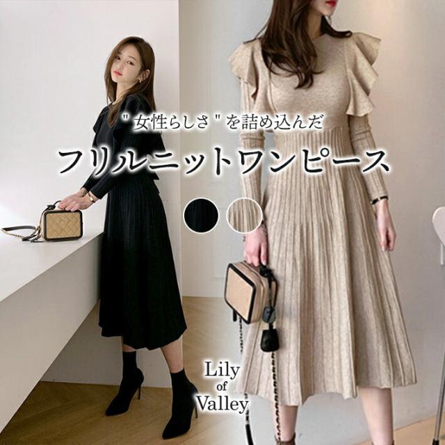 女性らしさをギュッと詰め込んだ上品なフリルニットワンピース。