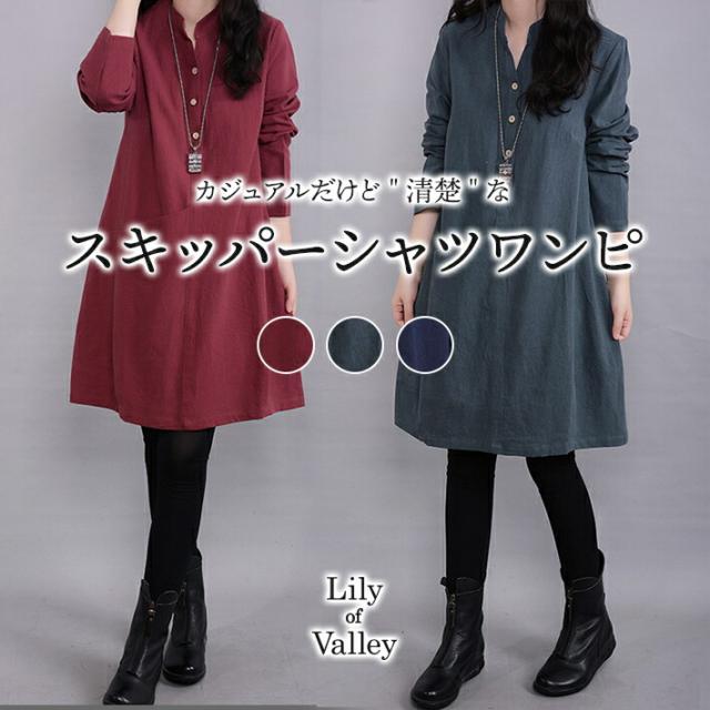 店内SALE!! スキッパー オーバーサイズ シャツ ワンピース カジュアル 長袖 ゆったり 上品 無地 / レディース ひざ上 膝上 ひざ丈 膝丈 ミディ丈 フレア ミディアム丈 ロングシャツ チュニックシャツ チュニック 赤 青 緑 グリーン ブルー レッド 秋 冬 秋冬 春