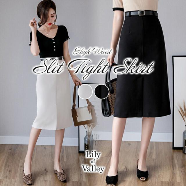 送料無料&即納★ ミディアム丈 ハイウエスト スリット タイト スカート レディース きれいめ タイトスカート / ボトムス ペンシルスカート 大きいサイズ 春 夏 秋 春夏 無地 膝丈 ひざ下 膝下 フォーマル オフィス カジュアル オフィスカジュアル 白 ホワイト 黒 ブラック