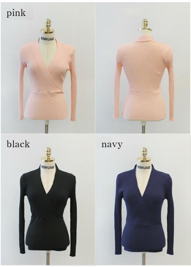 Vネック カシュクール ニット セーター 長袖 上品 セクシー 冬 春 秋 白 ホワイト 黒 ブラック ピンク 紺 ネイビー 紫 パープル ワインレッド / レディース トップス リブ ニットソー カットソー タイト きれいめ カジュアル オフィス お呼ばれ パーティー 【当店オススメ】