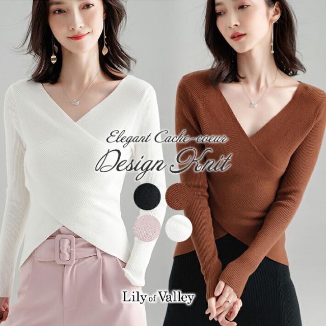 ・カシュクールデザインが「大人女性」の魅力を感じさせてくれる長袖リブニットです。