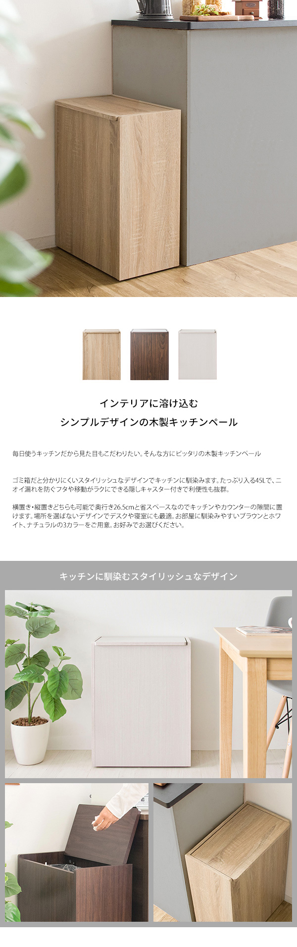 毎日使うキッチンだから見た目もこだわりたい。そんな方にピッタリの木製キッチンペール