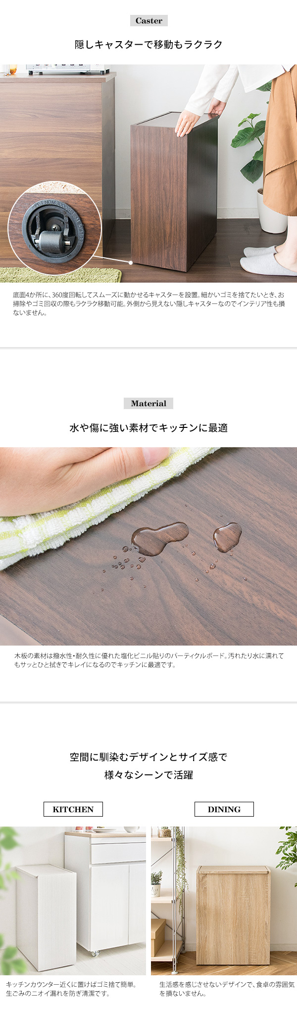 ゴミ箱に見えないスタイリッシュなデザインでお部屋に溶け込む、キャスター付き木製ダストボックス